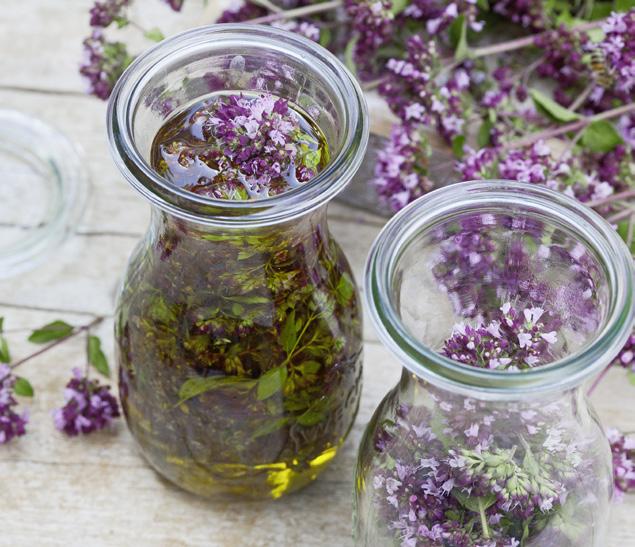 Byliny nebo plody nechte nejlépe několik hodin zavadnout, protože čerstvé mají v oleji tendenci plesnivět. Potom rozmělněnými bylinami nebo plody naplňte do jedné třetiny sklenici se širokým hrdlem a následně ji doplňte až po okraj dobrým olivovým olejem (nežlukne tak rychle jako