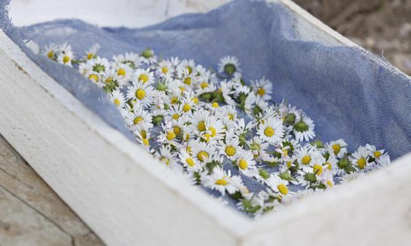 K sušení drobných květů a listů rozložíme plátno nebo síť proti hmyzu na podnos