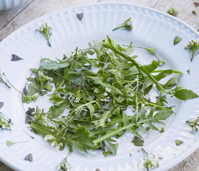 Dejte na jaře své látkové výměně řádný impuls: salát ze šťovíku kyselého, pučící bršlice kozí nohy, květů pampelišky a sedmikrásek, popence a kerblíku lesního