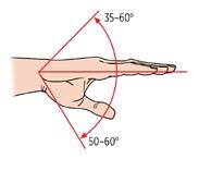 Obr. 1.30 Technika intraartikulární punkce metakarpofalangeálních a metatarzofalangeálních kloubů. Dorzální přístup se sklonem jehly 60° laterálně nebo mediálně.