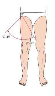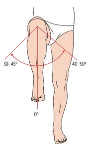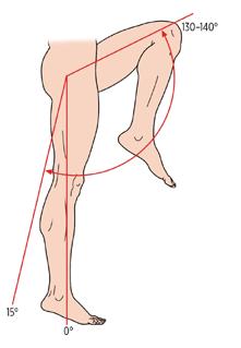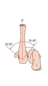 Obr. 1.39 Technika intraartikulární punkce kolenního kloubu z laterálního přístupu. Extenze kolene, relaxace stehenního svalu, jehla vedená z laterální plochy pod úhlem 45° proximálně pod proximálním okrajem pately.