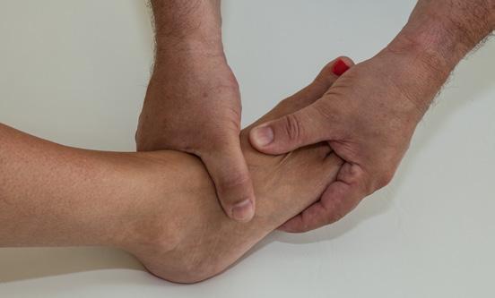Obr. 1.42 Technika intraartikulární punkce hlezenního kloubu. Talonavikulární přístup pod předním okrajem zevního maleolu.