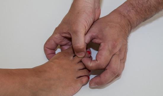• Dorzální přístup kolmo ke kůži (90°) laterálně nebo mediálně u interfalangeálních kloubů (obr. 1.29).