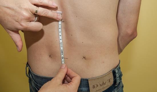 • Přístup k trochanterické burze z laterální plochy mezi velkým trochanterem a šlachou m. gluteus medius v místě největší bolestivosti u pacienta ležícího na boku na nepostižené straně.