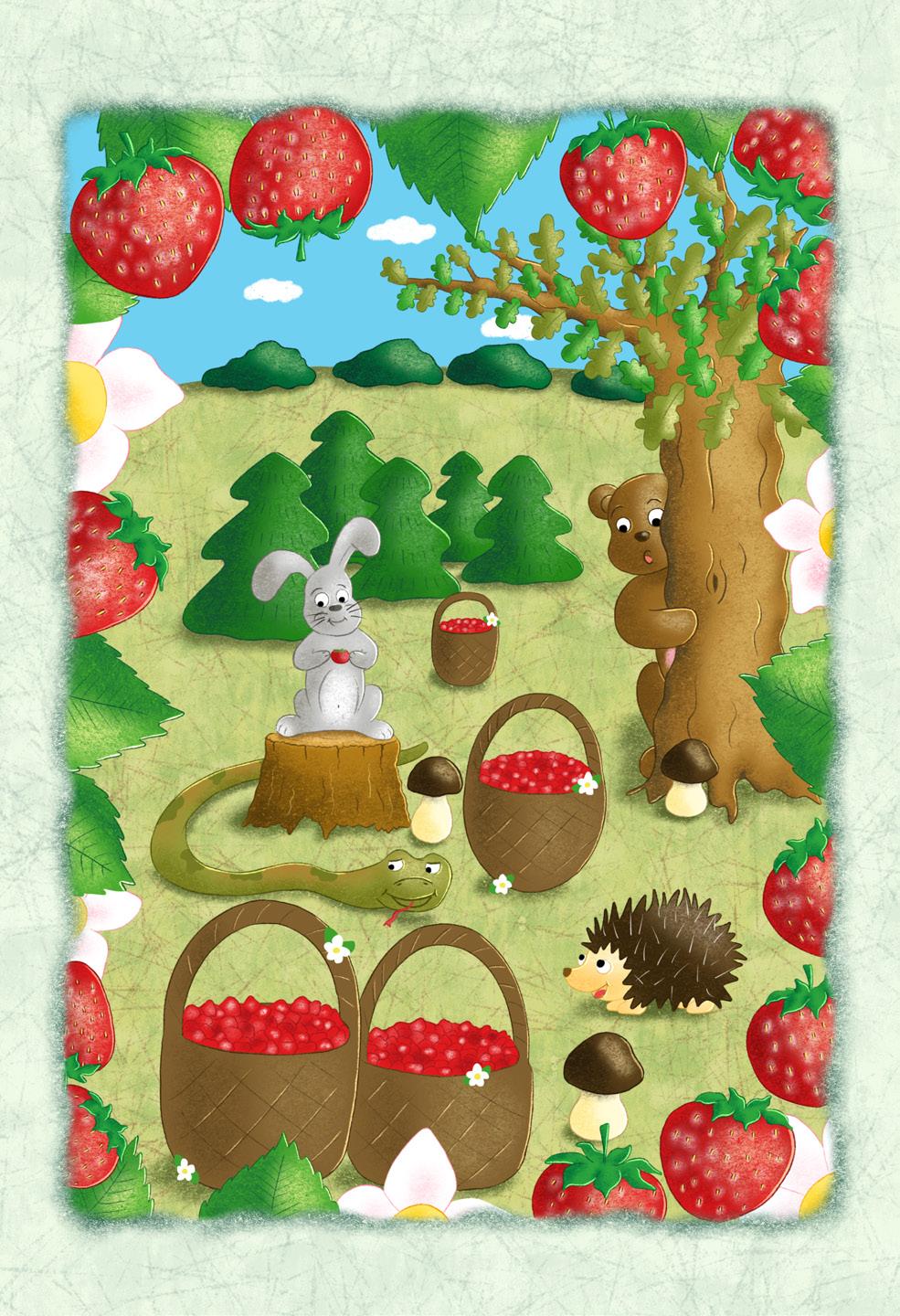 „Venku je krásně, Sedmikvítku. Chtěly jsme s Dřevulkou natrhat pár lesních jahod a upéct rodičům jahodový koláč,“ začala vysvětlovat Mechulka.