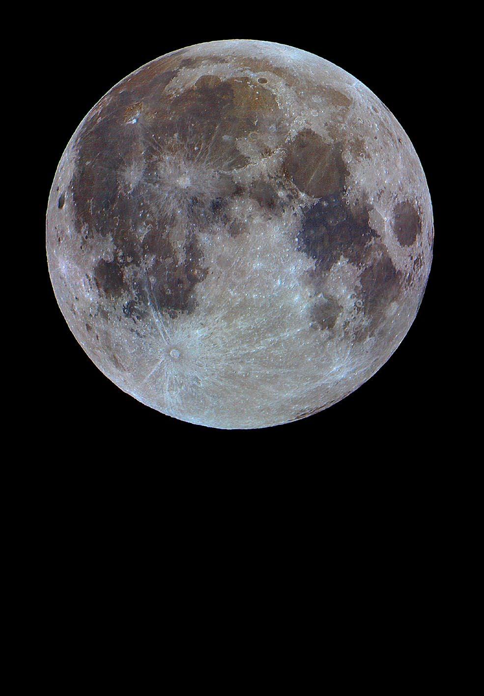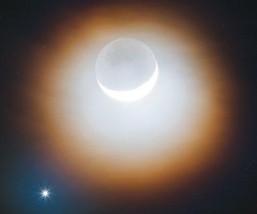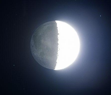 Měsíční koróna na této fotografii rovnoměrně obklopuje osvětlenou část Měsíce