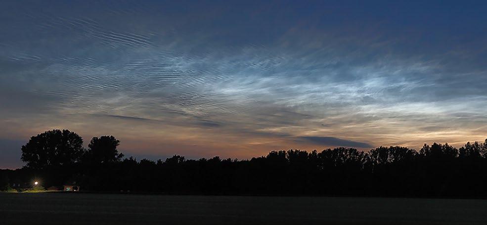 Noční svítící oblaky, které můžeme během týdnů blízkých slunovratu pozorovat především ve vysokých severních a jižních zeměpisných šířkách, se vznášejí v extrémních výškách nad 80 kilometrů. Zde nahoře je už jen minimální vzdušná vlhkost a ta zřejmě krystalizuje na meteoritických částečkách prachu, které zvnějšku permanentně dopadají na zemskou atmosféru a poté se pomalu snášejí dolů. Typický je namodralý vzhled těchto většinou vláknitých oblaků, které jsou v této výšce ještě osvětlovány (půlnočním) Sluncem, zatímco na samotném místě pozorování už soumrak více či méně pokročil. Tyto geometrické podmínky zároveň vysvětlují, proč můžeme noční svítící oblaky vidět převážně v období kolem slunovratu a především ve vysokých zeměpisných šířkách – pro pozorovatele z nižších šířek zůstávají tyto oblaky příliš nízko nad obzorem nebo už vůbec nejsou osvětleny Sluncem.