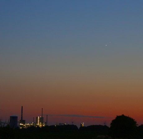 Venuše a Jupiter za večerního soumraku. Jestliže víme, kde ji hledat, můžeme někdy Venuši pozorovat dokonce i na denní obloze.