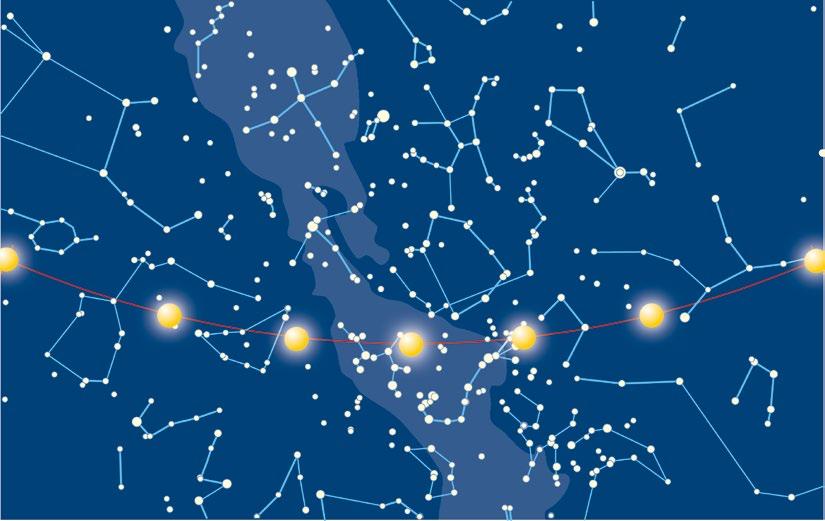 Slunce putuje v průběhu roku přes souhvězdí zvěrokruhu