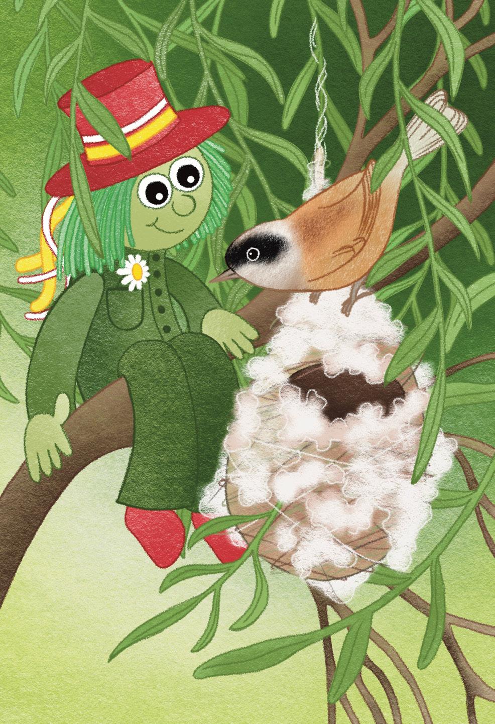 Pokaždé když ptáček vyrazil na lov hmyzu, dobře se rozhlížel po okolí, jestli někde neuvidí nějakého dalšího opuštěného zeleného panáčka. Dny utíkaly jako voda v průzračném lesním potůčku. Z vajíček schovaných v hnízdě se vylíhla ptáčata, která se měla