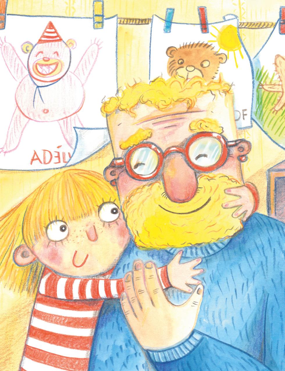 „Podívej, tati, tady je můj obrázek,“ chlubí se Adélka. Na nástěnce mají všechny děti své obrázky. Jsou na nich hnědí huňatí medvídci.