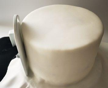 S vyhlazováním začínáme od horní ploché strany dortu, následují boky. Prvně je uhladíme dlaněmi, přičemž vždy vytahujeme hmotu směrem vzhůru, abychom se vyvarovali potrhání hmoty.