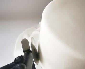 Přesahující hmotu při spodním okraji dortu odřízneme rádýlkem. Čistou