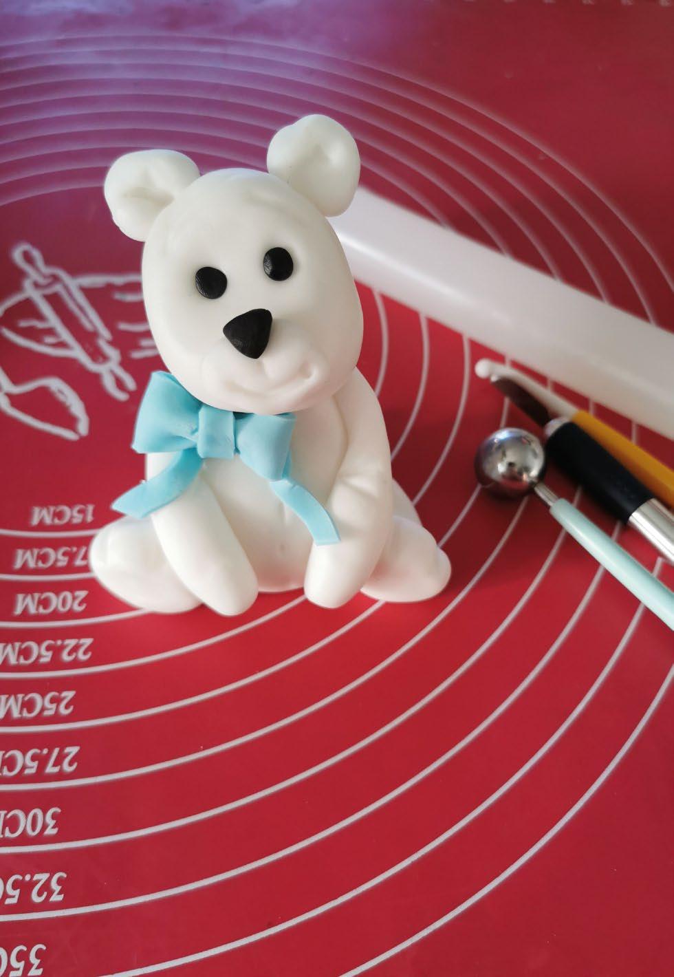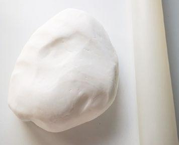 Cukrářská hmota je zpočátku tvrdá, a proto je nutné ji nejdřív pořádně zpracovat. V teplých dlaních hezky změkne, stane se poddajnější a lépe se s ní pak pracuje – jde snadněji rozválet a dobře se z ní modelují figurky.