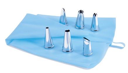 Cukrářské sáčky a špičky různých tvarů – budou perfektní pro vytváření sofistikovaných rozet na obmazaném dortu i pro výrobu ozdob na pusinky. Špičky na zdobení se dodávají v mnoha různých tvarech a velikostech. V obchodech s cukrářskými potřebami najdete kulaté hroty s hvězdicovitými konci, volánky, copánky, listy, květy nebo lístky. Kombinací různých druhů můžete připravit velmi zajímavé dekorace.