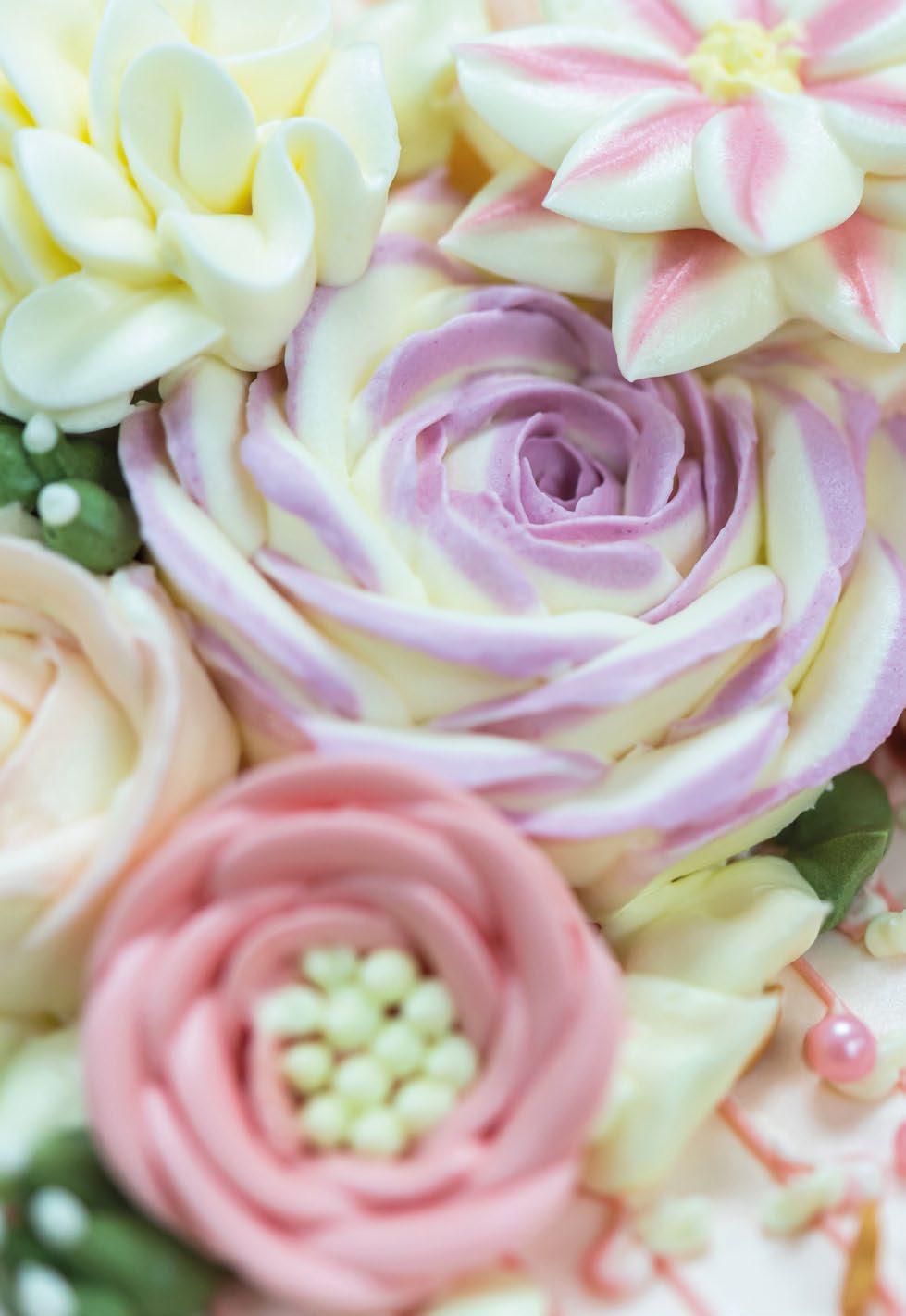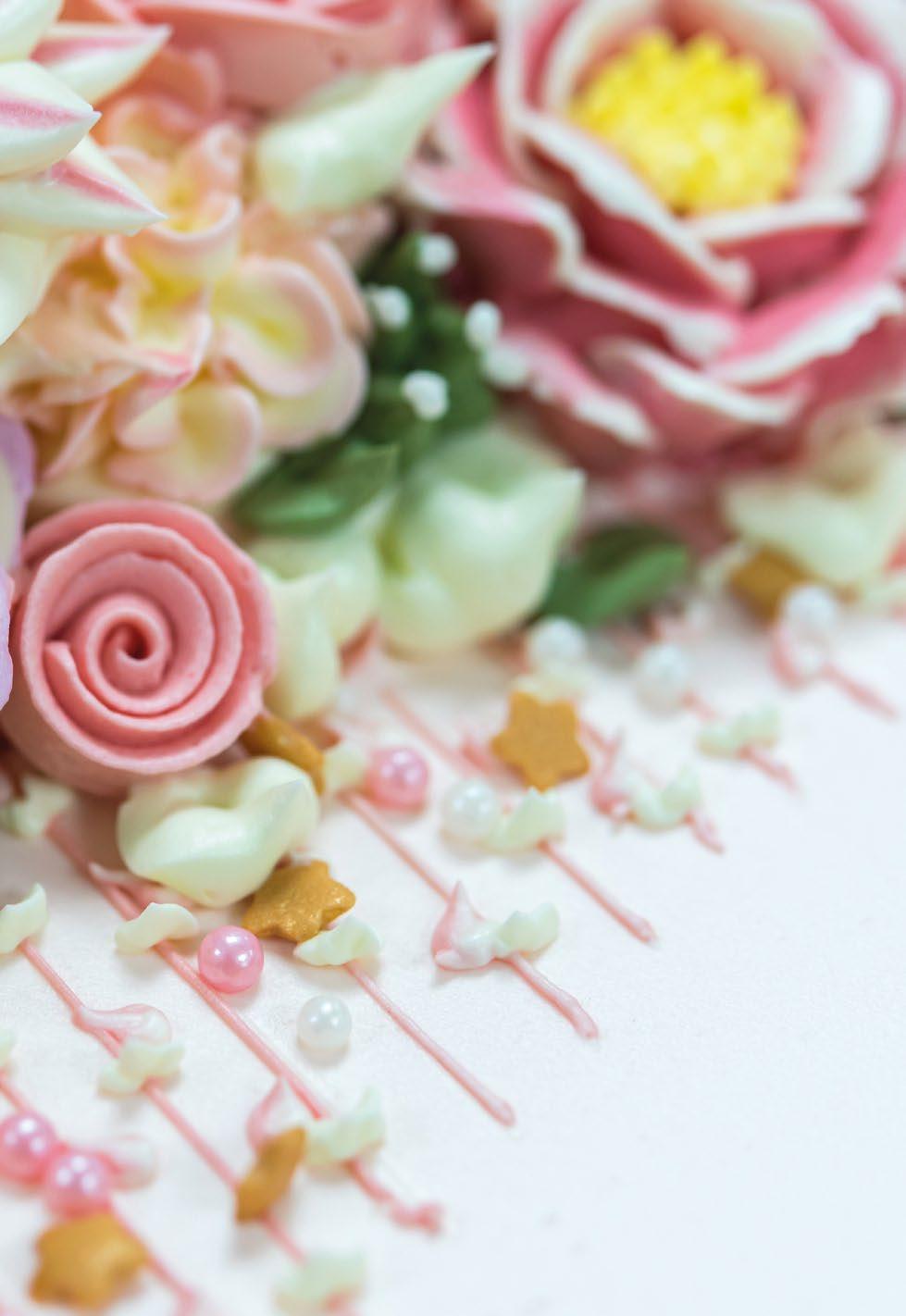 Květy – jsou obvykle sezónní, ale některé jsou dostupné po celý rok, například karafiáty, eustoma, růže. Nejdůležitější je, aby nebyly jedovaté! Seříznuté konce květů nezapomeňte obalit rozpuštěnou čokoládou, která zpomalí jejich vadnutí (obr. 1–2).