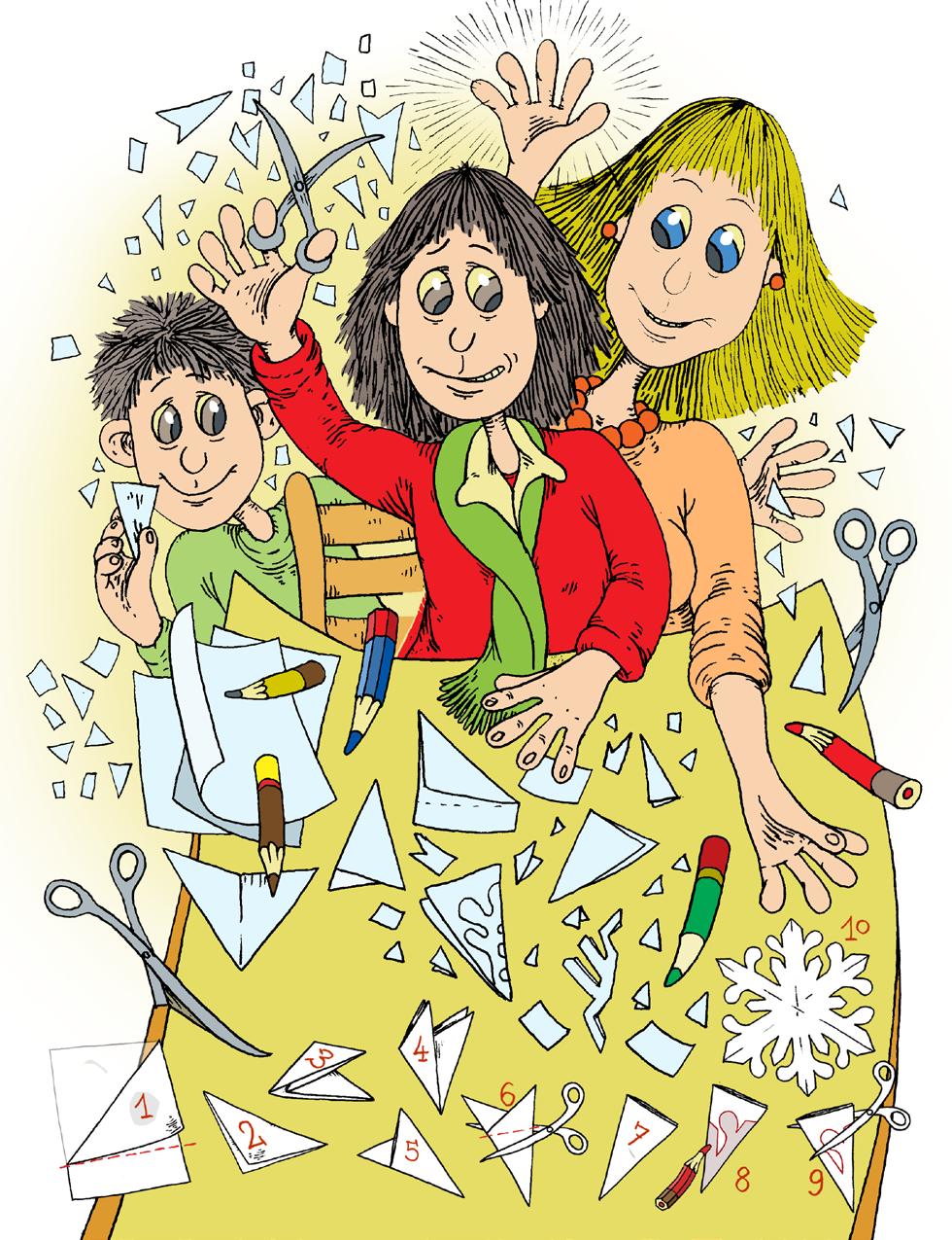 navrhla jim paní učitelka. Rozdala bílé papíry a vybídla své žáky, aby si připravili nůžky. Všem názorně ukázala, jak mají papír poskládat.