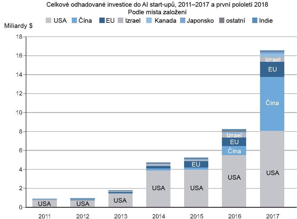 Odhad celkových investic OECD do startupů s umělou inteligencí (Zdroj: http://mng.bz/zGN6)