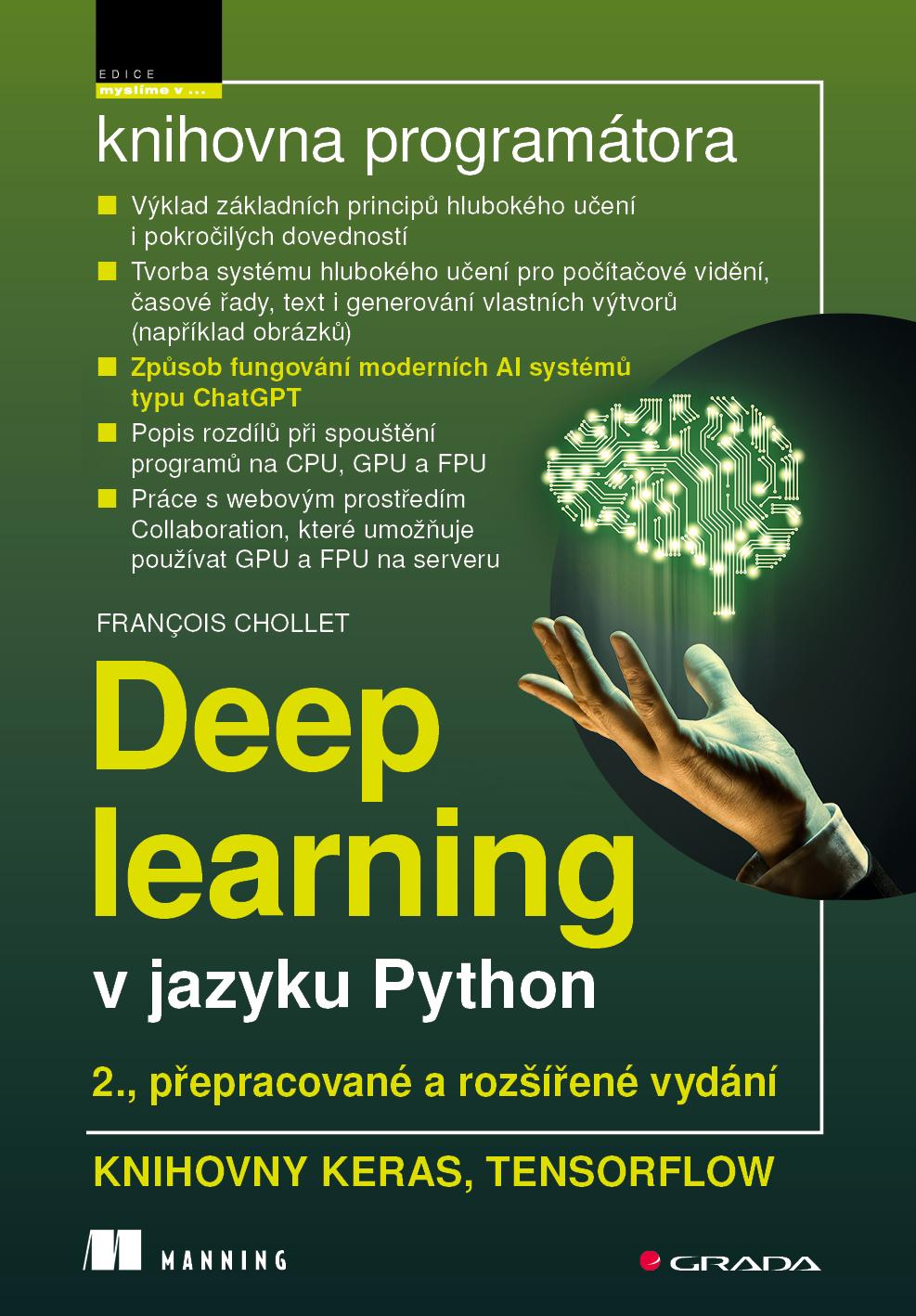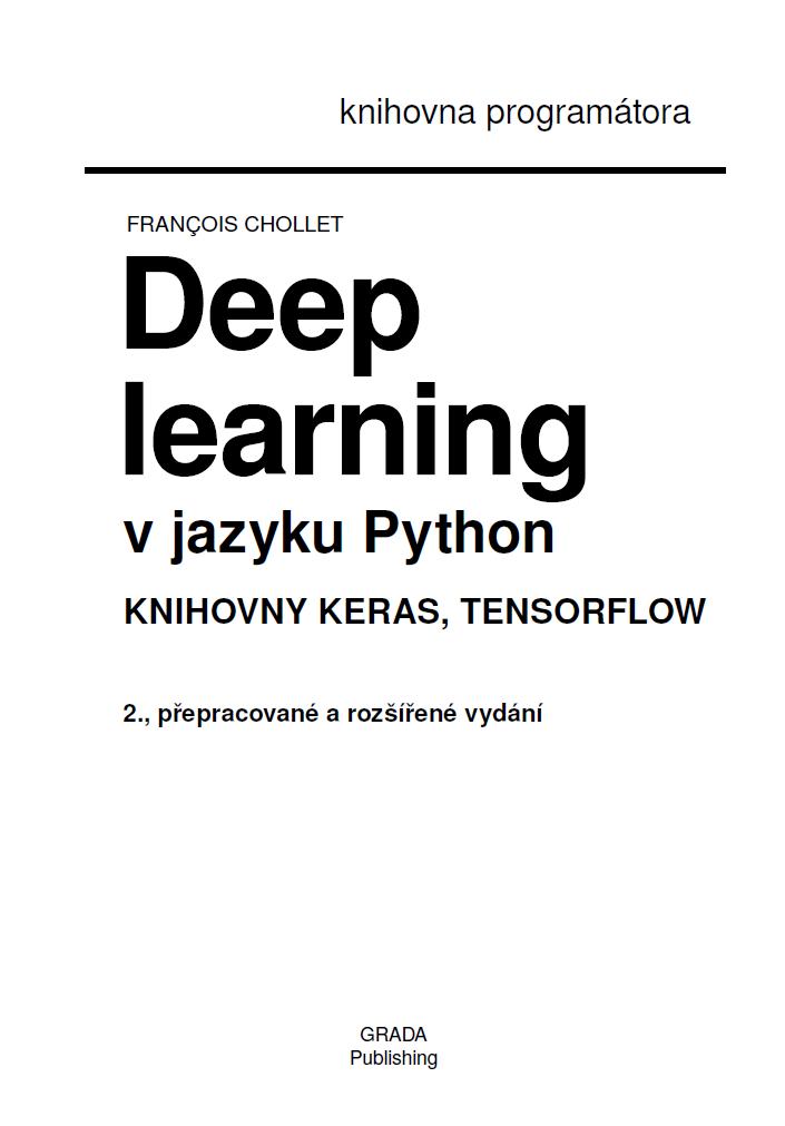 Přeloženo z anglického originálu knihy Françoise Cholleta Deep Learning with Python, vydaného v roce 2021 nakladatelstvím Manning Publications Co, Spojené státy americké.