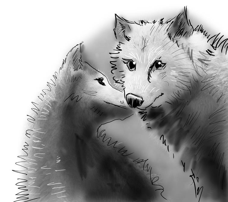 „Tohle je dost zajímavá otázka,“ podotkl Jonáš. „Podle posledních výzkumů se totiž jedná o o mýtus a v posledních letech biologové volně žijících živočichů od termínu „alfa“ do značné míry upustili. Vědci zjistili, že většina vlčích smeček ve volné přírodě jsou prostě rodiny vedené chovným párem. Nicméně v takové vlčí smečce panuje přísná hierarchie, kterou všichni členové dodržují. Přesto občas dojde ke střetu – to když se některý z podřízených samců domnívá, že by mohl převzít vůdcovské místo. Zdánlivě drsný souboj většinou netrvá dlouho, protože slabší jedinec rychle uzná svou porážku a dá to soupeři najevo přikrčeným podřízeným postojem. A tím to skončí, protože nadřazený vlk nepotřebuje svého soupeře zranit, tím by oslabil svou smečku.“