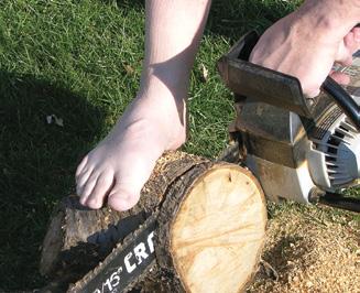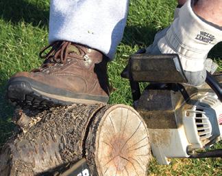 1.18 Při řezání dřeva řetězovou pilou noste ochrannou obuv a rukavice.