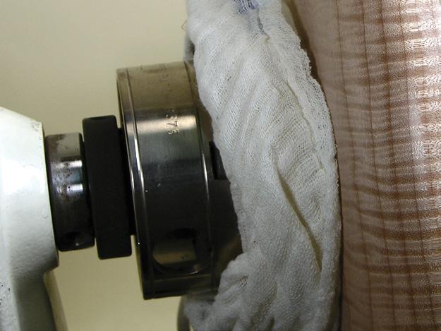 Látku, kterou chcete svou práci vyleštit, si nikdy neomotávejte kolem ruky. Soustruh by ji totiž mohl zachytit a poranit vás (viz 1.16).