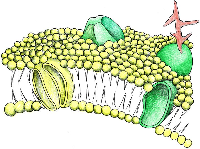 jsou uspořádány do dvojvrstvy a orientovány hydrofobními konci molekul dovnitř a hydrofilními konci na povrch membrány. V této dvojvrstvě jsou nepravidelně rozloženy i molekuly bílkovin. Některé bílkoviny procházejí celou membránou, jiné jsou do ní jen zanořeny. Další jsou pouze na povrchu membrány a „čnějí“ do okolí. Membrány mají polotekutý charakter a jsou v neustálém pohybu a přestavbě.