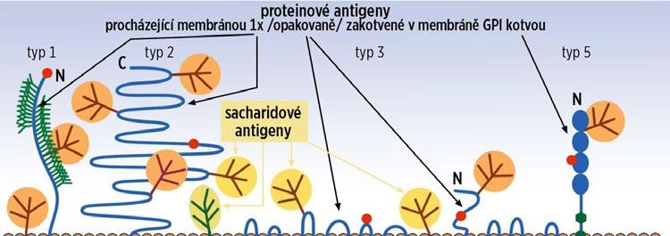 Antigeny = terminální oligosacharidy široké palety glykosylačních řetězců glykoproteinů a glykolipidů (obr. 2.2).