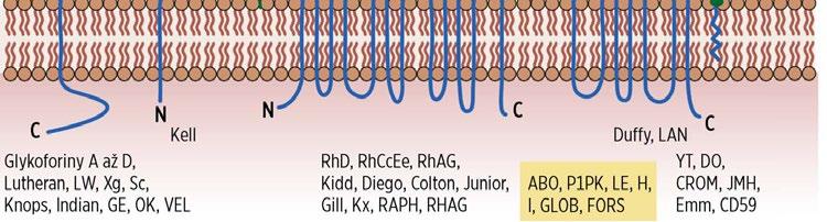 2.33 Lokalizace lokusů krevních skupin na chromozomech, membránová struktura, CD
