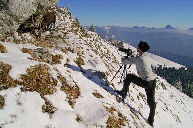 Kozorožec a jeho pozorovatel: v oblastech, kde zvířata nejsou lovena, může být jejich pozorování docela snadné