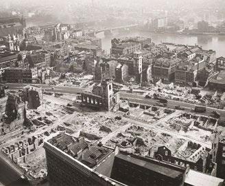 Ve vzdálenosti asi 800 metrů od Fleet Street, kde za války sídlila většina redakcí novin, se nachází katedrála sv. Pavla s charakteristickou kopulí, mnohokrát za války fotografovanou. Noční nálet z 29. na 30. prosinec 1940, při němž zahynulo více než 160 lidí a přes 500 bylo raněno, přečkala bez úhony. Tento zničující útok vešel do historie jako „Druhý velký požár Londýna“, a přestože mnoho budov podlehlo zkáze, nepoškozená katedrála se stala během Blitzu symbolem vzdoru. Fotografie nahoře, pořízená roku 1942, ukazuje zkázu způsobenou bombardovací kampaní Luftwaffe v místech mezi katedrálou sv. Pavla a mostem Southwark přes Temži.