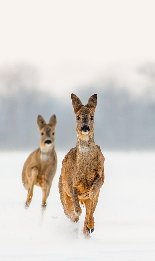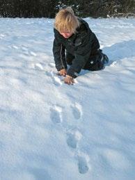 → Sníh představuje ideální podklad pro otisk končetin. Protože v zimě nejsou k dispozici listy ani tráva, pouštějí se býložravci do větviček a kůry, kde často zanechávají zřetelné stopy po konzumaci. Na bezlistých stromech a keřích se zase dají nalézt hnízda ptáků, drobných hlodavců a veverek, která jsou v létě ukrytá.