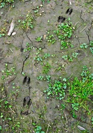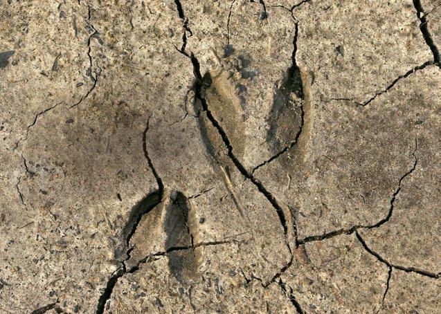 CO JE VLASTNĚ ZVÍŘECÍ STOPA? Neexistuje zvíře, které by po sobě nezanechalo nějakou známku své přítomnosti. Klasickou stopu představují otisky končetin, jež zvíře zanechává při pohybu v měkkém podkladu. Existuje však mnoho dalších typů stop neboli pobytových znaků. Patří k nim například kmen stromu zbavený kůry, kaliště v lesní půdě, nora v zemi nebo hromádka hlíny na louce, ohlodaná šiška, ukousnutá větvička, hnízdo ve křoví spletené ze stébel trávy, vaječná skořápka, peří, trus nebo vývržek a mnohé další.