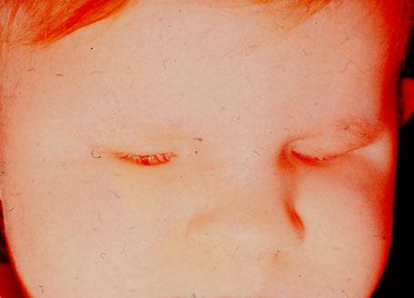 Downův syndrom – hypotelorismus, epikanty, blefaritida, obstrukce slzných cest