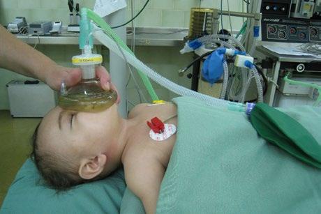 Obr. 5.3 Dítě zajištěné flexibilní laryngální maskou