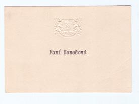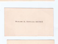 Vizitky Hany Benešové z doby, kdy byla manželkou ministra zahraničních věcí a prezidenta republiky.