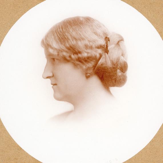 Ateliérová fotografie Hany Benešové po návratu do Prahy v roce 1919, foto J. F. Langhans. Alice Masaryková napsala své matce Charlottě v roce 1915 v dopise z vězení: „Paní Benešová má… tvar hlavy jakoby z římské kameje.“ (ANM, H. Benešová, dodatky)