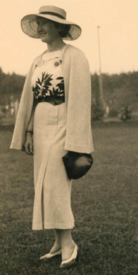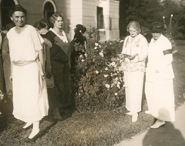Dámy při procházce na letním sídle prezidenta ve slovenských Topoľčiankách, 21. 8. 1923, v bílém zleva – Olga Revilliodová-Masaryková, Hana Benešová a Alice Masaryková. Alice má na rukávu černou pásku na památku nedávno zesnulé matky. (ANM, E. Beneš, foto 1923)