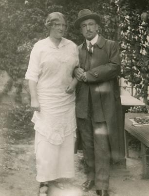 Manželé Benešovi v Řenčově těsně před odchodem Edvarda Beneše do emigrace, 31. 8. 1915. (ANM, H. Benešová, dodatky)