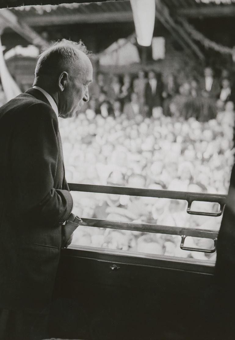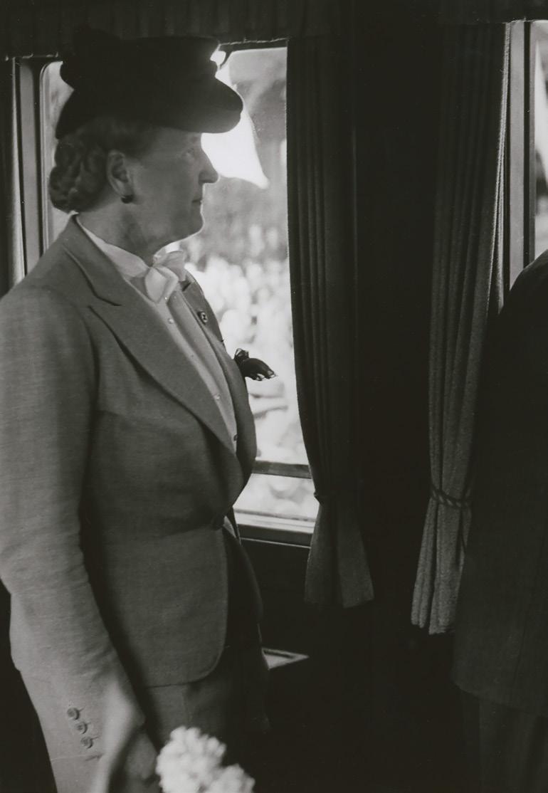 Manželé Benešovi se vracejí po 2. světové válce do Prahy, 16. 5. 1945. V Benešově politické kariéře se jednalo o výjimečný okamžik plný emocí. Jednoduchý anglický kostým a perfektně padnoucí oblek na míru vyjadřovaly hodnoty jako tradice, nadčasovost a důvěryhodnost. (ANM, E. Beneš, foto 1945)