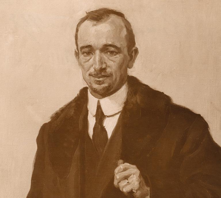 Obraz Edvarda Beneše od Oskara Brázdy vznikl při Benešově návštěvě v Římě v roce 1917, fotografie, výřez. Dnes je portrét ve sbírce Vojenského historického ústavu Praha. (ANM, H. Benešová, dodatky)