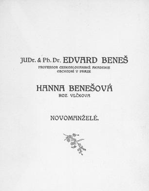 Obřad byl stejně skromný jako jejich život. Beneš nechtěl zameškat výuku na obchodní akademii, a tak objednal obřad na brzkou ranní hodinu. Po sedmé již vyrážel do školy. Slavnostní oběd, na který nakoupila cestou z obřadu, přichystala doma sama novomanželka. Na svatební cestu nejeli, ale v následujících letech se spolu vrátili do Paříže a navštívili i Londýn. Hana toužila vidět Řím. Beneš se tam dostal za války, ona si však musela počkat až do roku 1921.