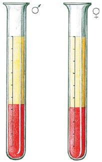 Obr. 2. ZNÁZORNĚNí PROCENT OBJEMU KRVE PŘIPADAJíCíCH NA KRVINKy ve srovnání s krevní plasmou (hematokrit); rozdíl mezi muži a ženami