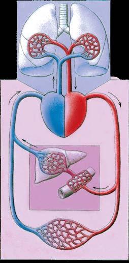 A SCHEMA PRŮTOKU KRVE TĚLEM SAVCŮ červeně – okysličená krev modře – krev zbavená kyslíku a nasycená CO2