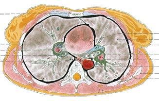 Obr. 50. PŘíČNÉ ŘEZy HRUDNíKEM, překreslené z obrazů počítačové tomografie na obr. 49