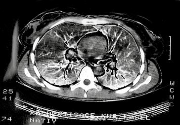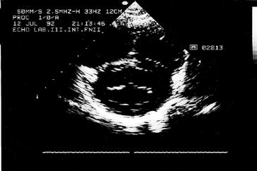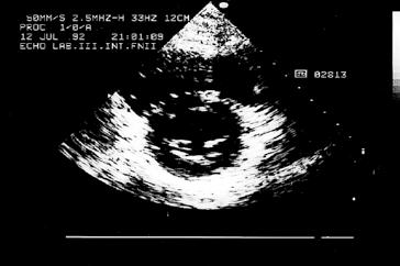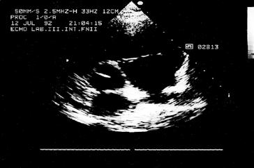 technikám arteriografie; získává se pak oddělený obraz dutin pravé a levé strany srdce. Pro zobrazení řezů srdcem je možno použít i techniky CT (počítačová tomografie – obr. 49), kde vidíme srdce s plícemi na transversálních řezech hrudníkem, a dále moderní techniky ultrazvukového zobrazení (obr. 48).