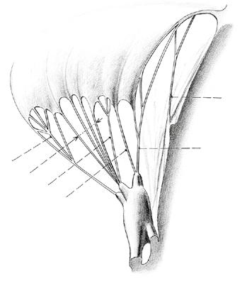 V šikmých projekcích srdce jsou více patrné poměry jednotlivých oddílů srdečních a tvar a poloha aorty (obr. 51);