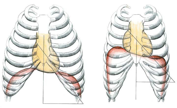 43. POLOHA SRDCE A SKLON SRDEČNí OSy PŘI VDECHU A VÝDECHU