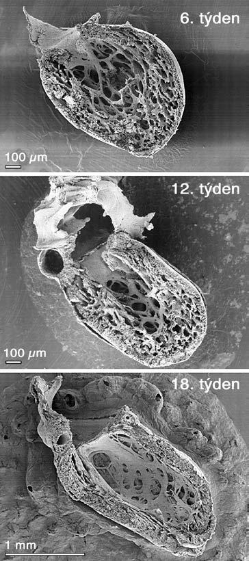 Obraz je vytvořen tak, že znázorňuje pohled z kaudální strany na plochu řezu; zádová strana těla je na všech obrazech dole; vpravo od řezu je měřítko v centimetrech