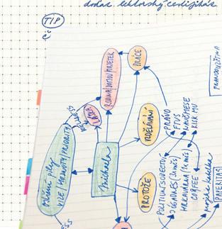 Kreativní diář se hodí i pro ty, kteří jej používají hlavně v prá ci – právě proto, že umožňuje záznamy kdykoliv přerušit třeba zápisem z porady. Tvary i barvy mohou být střízlivější, o to struk turovanější bude samotný obsah.